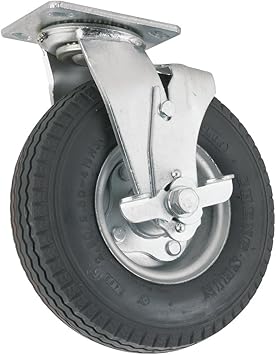 Pneumatic Caster Wheel With Swiveling Top Plate W Brake 8 Inch 310 Lb Load Capacity Air Filled Wheel Provides A Cushioned Ride Shock Absorption Best Suited For Outdoor Use Amazon Ca Tools